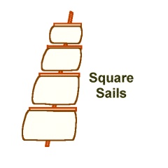 | Square sails are fixed to the rigging at 4 points. Triangular sail at only 3 points. |